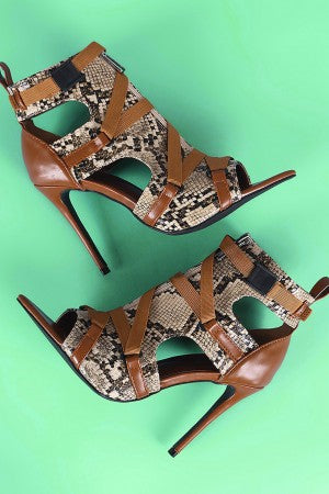 Pointed Open Toe Zipper Trim Lace-Up Stiletto Heel